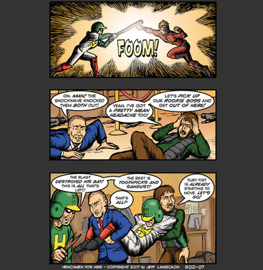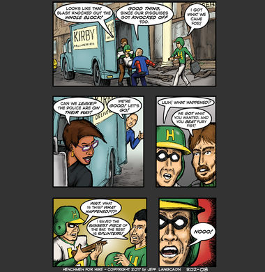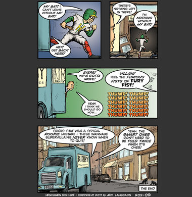 If you go way back to the first few pages of the original Henchmen story (The VIXX Saga, if you’re new around here…) you’ll see that one of the first rules of being a smart Henchman is knowing when it’s time to leave. It’s like the old Kenny Rogers song – you gotta know when to fold ’em. Unfortunately, the new boss makes a classic ‘Rookie’ mistake….