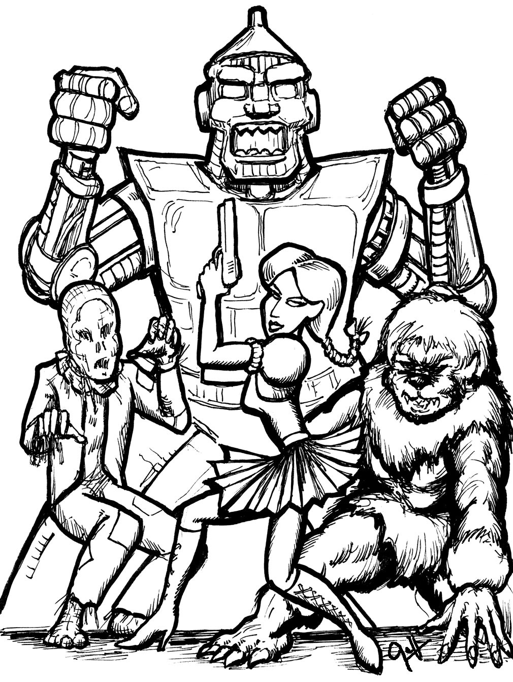 I submitted a sketch to the Comic Book Resources website challenge for their “The Line Is Drawn” feature. The first week’s challenge was to make a super hero or villain out of a fictional or real character from a supplied list of names. I did a quick sketch of “The Agents of OZ”  I thought it came out kind of neat, and who knows, maybe I can use some version of these characters in a future Henchmen outing.